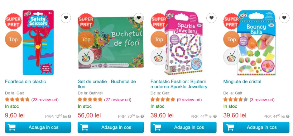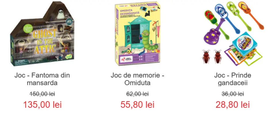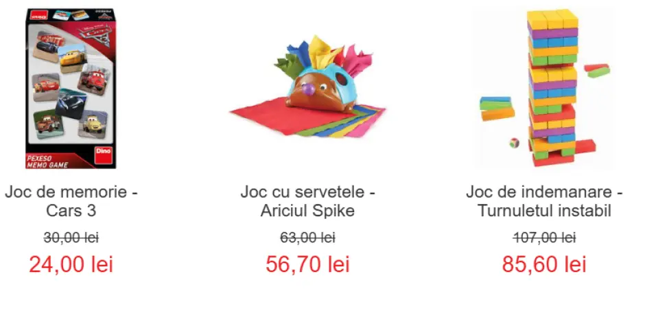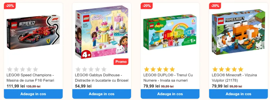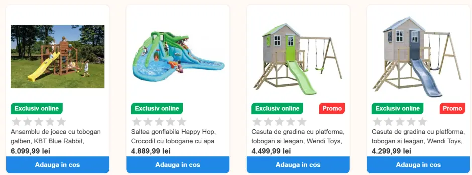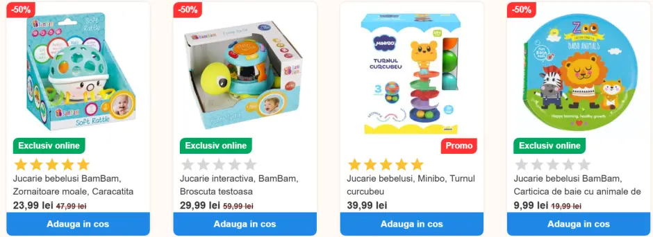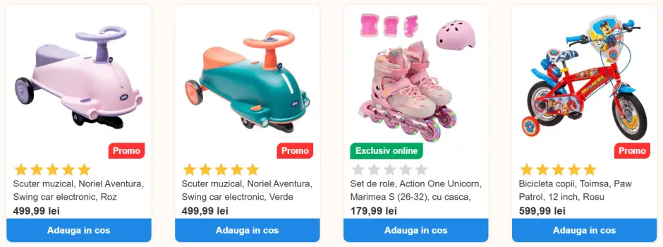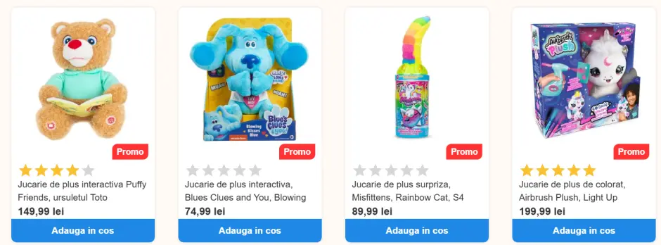 Prin CashClub, poți cumpăra toate aceste jucării din magazine partenere, beneficiind de reduceri și cashback atractiv.