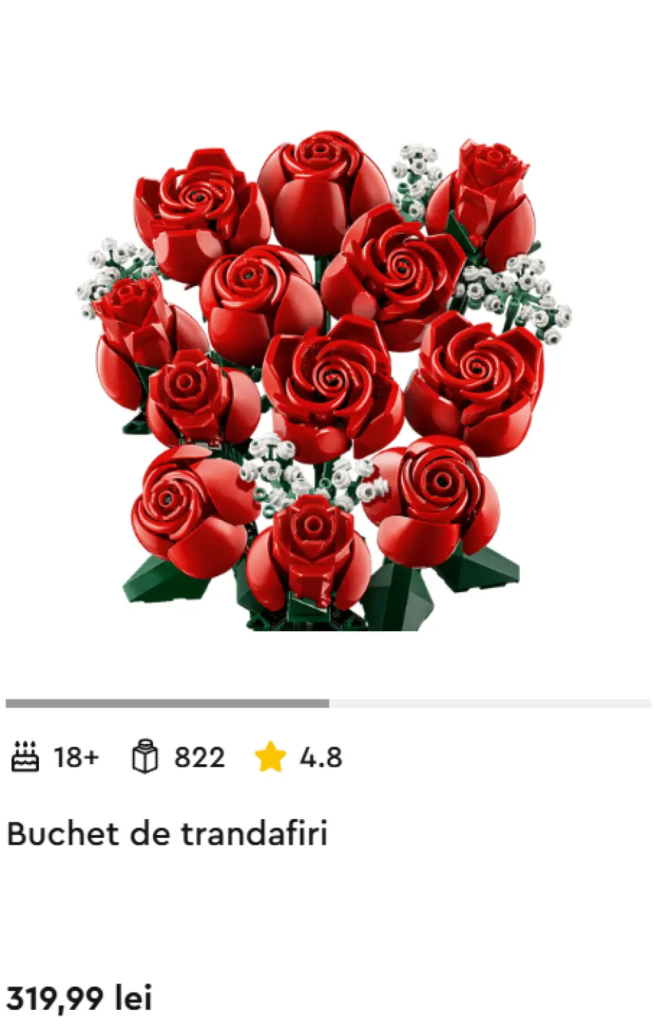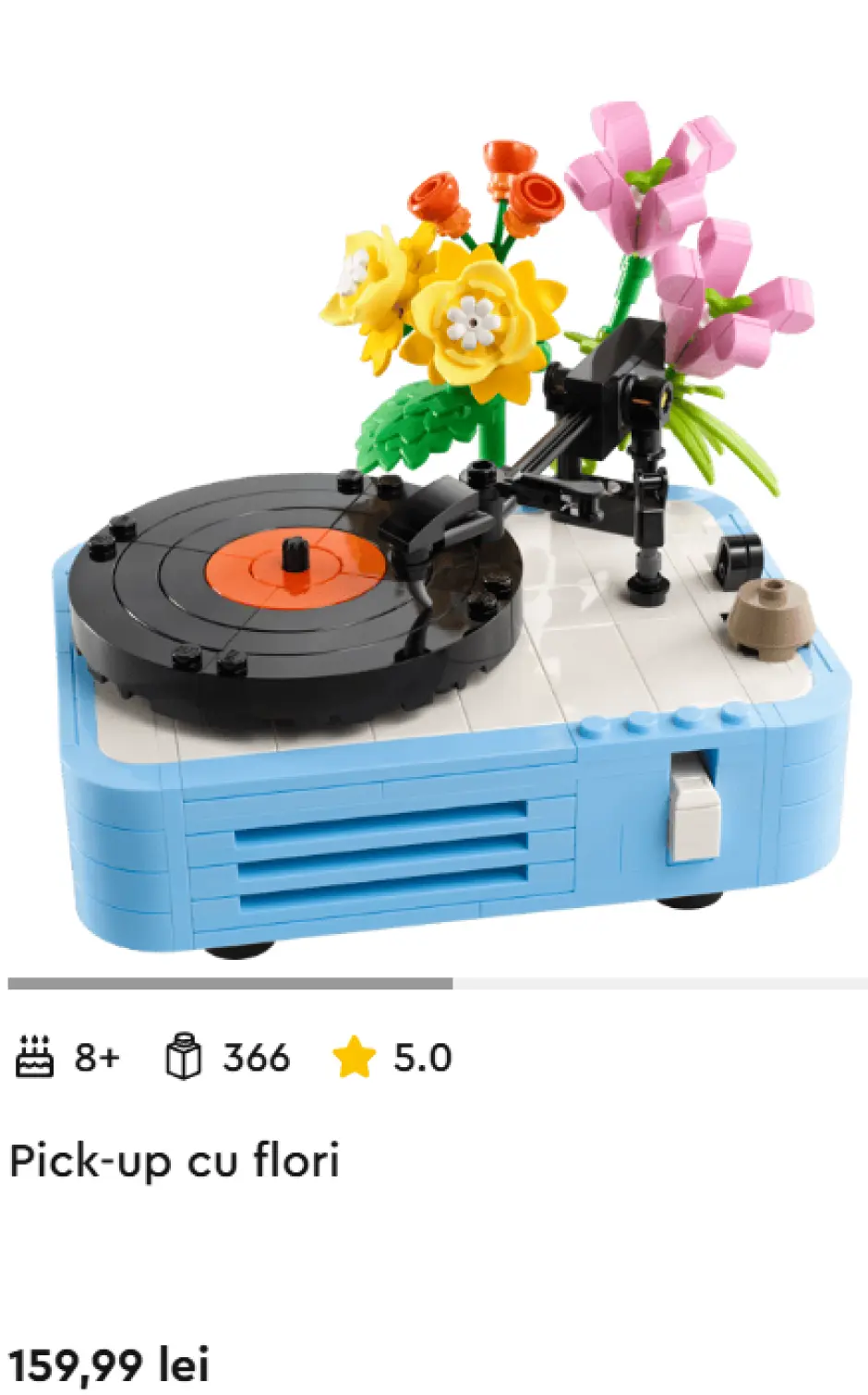 Foarte important, LEGO acoperă toate categoriile de vârstă și stiluri. Există seturi pentru copii mici, pentru adolescenți pasionați de gaming sau universuri fantasy, dar și pentru adulți care caută design, relaxare sau obiecte premium pentru casă. De la flori decorative și piese de artă, până la mașini tehnice sau colecții iconice, oferta este extrem de diversă.