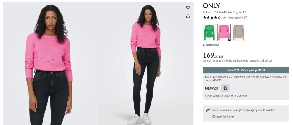 Profită acum de coduri și cupoane de reducere la magazinul nostru partener Modivo pentru a-ți îmbogăți garderoba cu noi colecții în culorile care vor fi la modă anul acesta. Folosește codul de reducere 20NEW pentru o extra reducere de -20% în coș, la achizițiile de minimum 459 lei. Codul este valabil până pe 31.01.2025. Aici poți vedea alte coduri și cupoane de reducere valabile în aplicația CashClub.