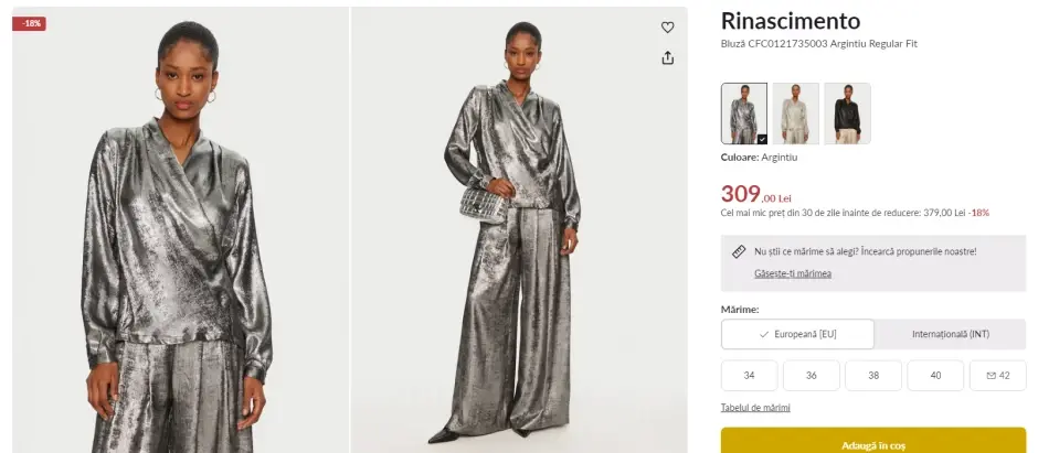 Note de stil: Una dintre cele mai mari reveniri cromatice din ultimele sezoane este, fără îndoială, argintiul. Această nuanță metalică a fost mult timp eclipsată de aur (și, pentru o perioadă scurtă, de aurul roz). După o revenire timidă prin intermediul bijuteriilor, argintiul explodează acum pe scena modei din 2025, acoperind totul, de la pantaloni și jachete până la articole mai așteptate, cum ar fi rochii și pantofi.