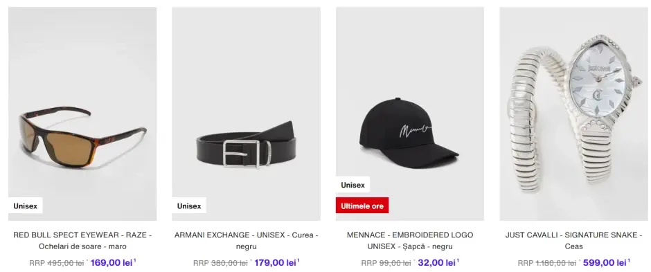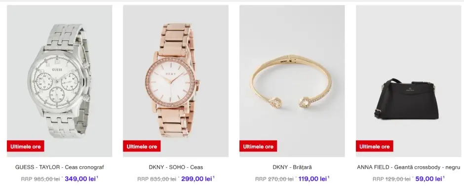 - Accesorii – genți, ceasuri, bijuterii și curele