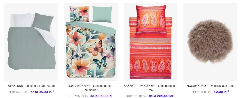 - Articole pentru casă – lenjerii, decorațiuni și ustensile de bucătărie