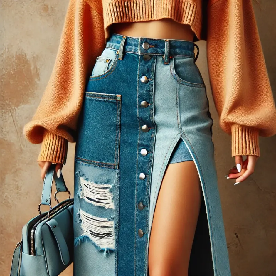 1. Fustele maxi din denim – După succesul lor din anii 2000, aceste fuste lungi din denim revin în variante moderne, cu croieli asimetrice și tăieturi îndrăznețe.