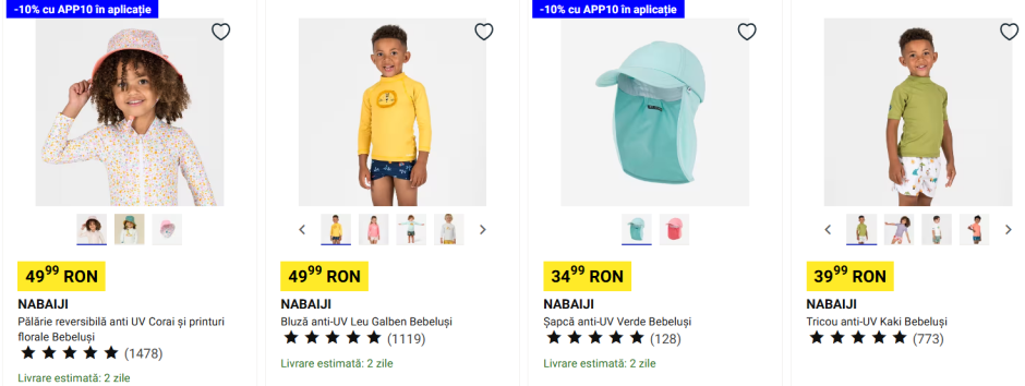 - Recomandarea medicală. Academia Americană de Dermatologie notează că, sub un material cu UPF 50+, doar 2 % dintre razele UV mai ajung la piele – barieră vitală până la 3 ani, când melanina protectoare este încă redusă.