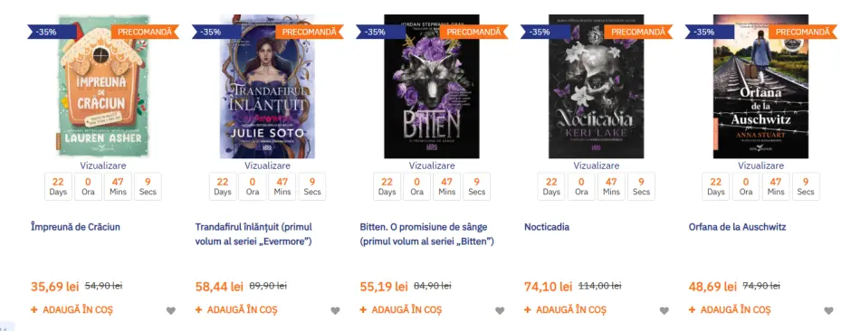 Ficțiune – young adult, literatură clasică, fantasy, romance, SF, thrillere, ficțiune istorică și contemporană.