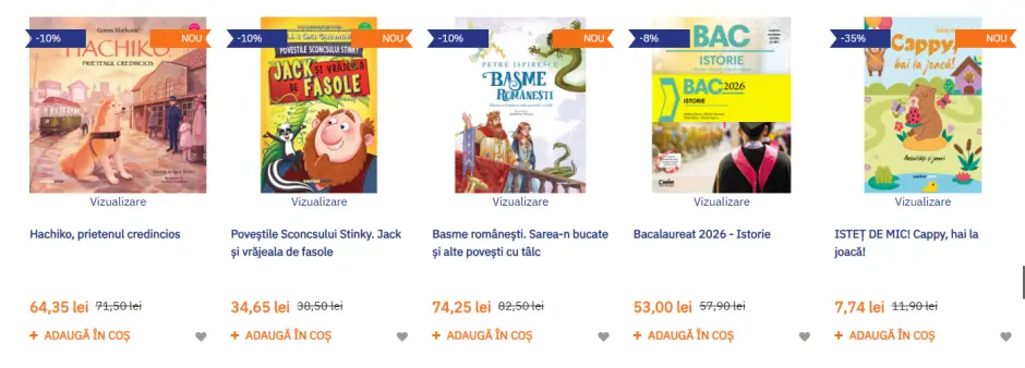 De asemenea, Corint are un segment dedicat educaționalului: manuale, atlase, dicționare, auxiliare școlare, enciclopedii, bibliografie pentru Bac și Evaluarea Națională 2026, dar și ghiduri pentru părinți.