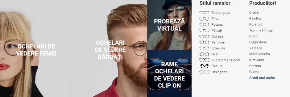 Pe Videt.ro, unul dintre cele mai apreciate magazine de optică online din România, găsești atât lentile de contact de la branduri internaționale, cât și mii de rame moderne pentru ochelari de vedere. Așadar, indiferent de preferințele tale, ai la dispoziție toate informațiile și instrumentele pentru a alege corect.