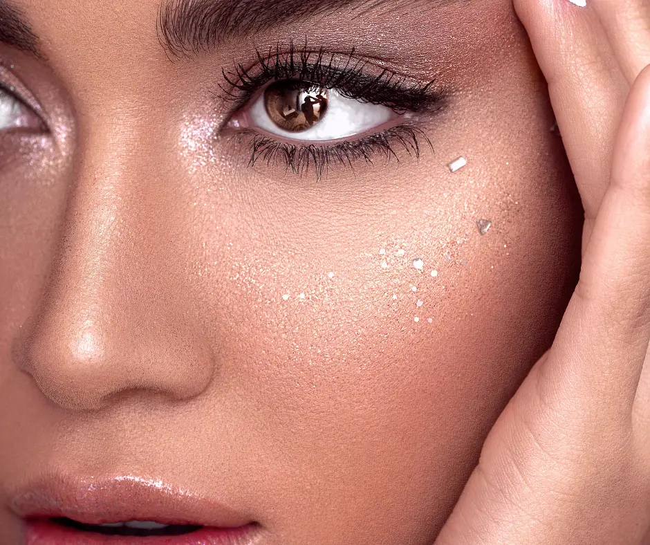 Nu putem ignora nici efectul glitter-ului sau al cristalelor aplicate pe pleoape, tendință care a explodat odată cu popularitatea serialului „Euphoria”. Pentru cele care îndrăznesc, glitter-ul poate fi aplicat atât pe pleoape, cât și în colțul intern al ochilor sau sub linia inferioară, pentru un efect dramatic și artistic. Se recomandă combinarea acestor detalii cu un ten nude și buze naturale, pentru a păstra echilibrul machiajului.