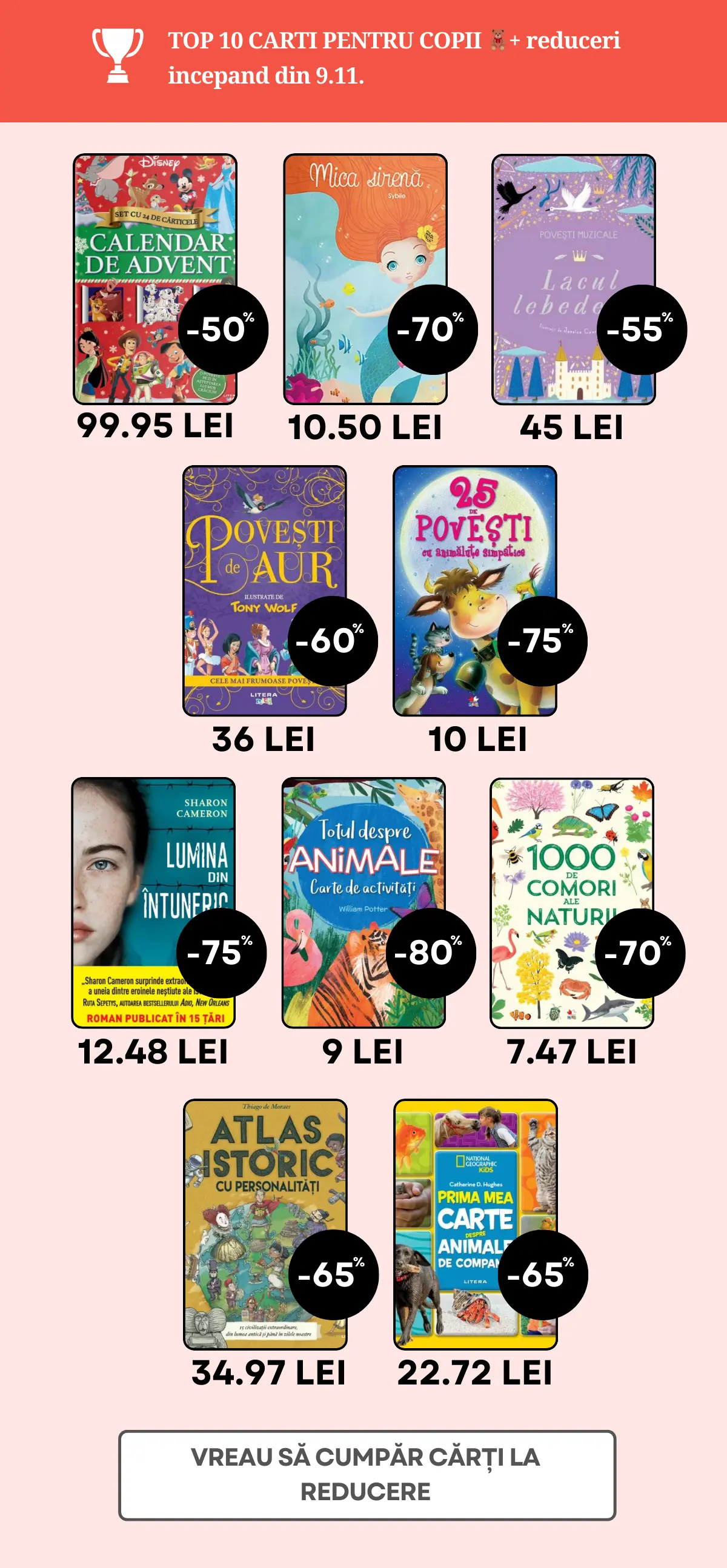 De asemenea, gasiti pe Litera.ro o intreaga colectie de carti educative si interactive, manuale si materiale auxiliare pentru copii, scolari si adolescenti.