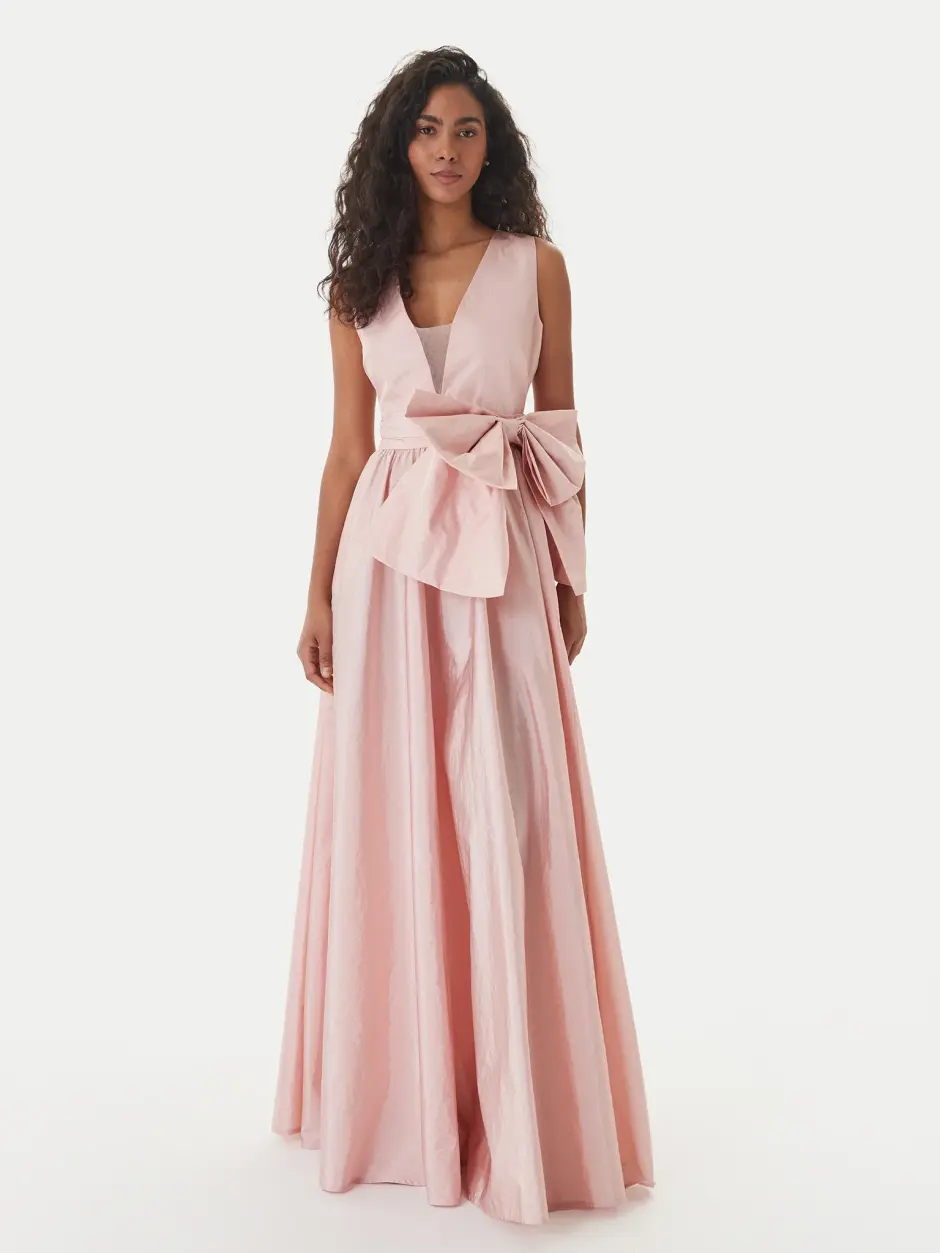 Satin mat, organza dublă, charmeuse, georgette cu greutate și catifea ușoară pentru serile de toamnă. Evită poliesterul ieftin — în fotografii și la lumina naturală se vede imediat diferența față de un material de calitate.