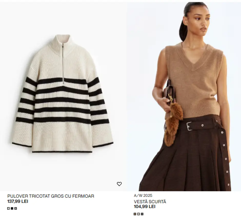 Moda toamnă/iarnă 2025 este o invitație la joacă și experiment. Indiferent că alegi un cardigan cozy, o cămașă cu dungi sau o jachetă faux-fur, H&M online îți oferă acces rapid la trendurile care definesc sezonul. Creează-ți propriile combinații, experimentează, și lasă-ți stilul să vorbească pentru tine.