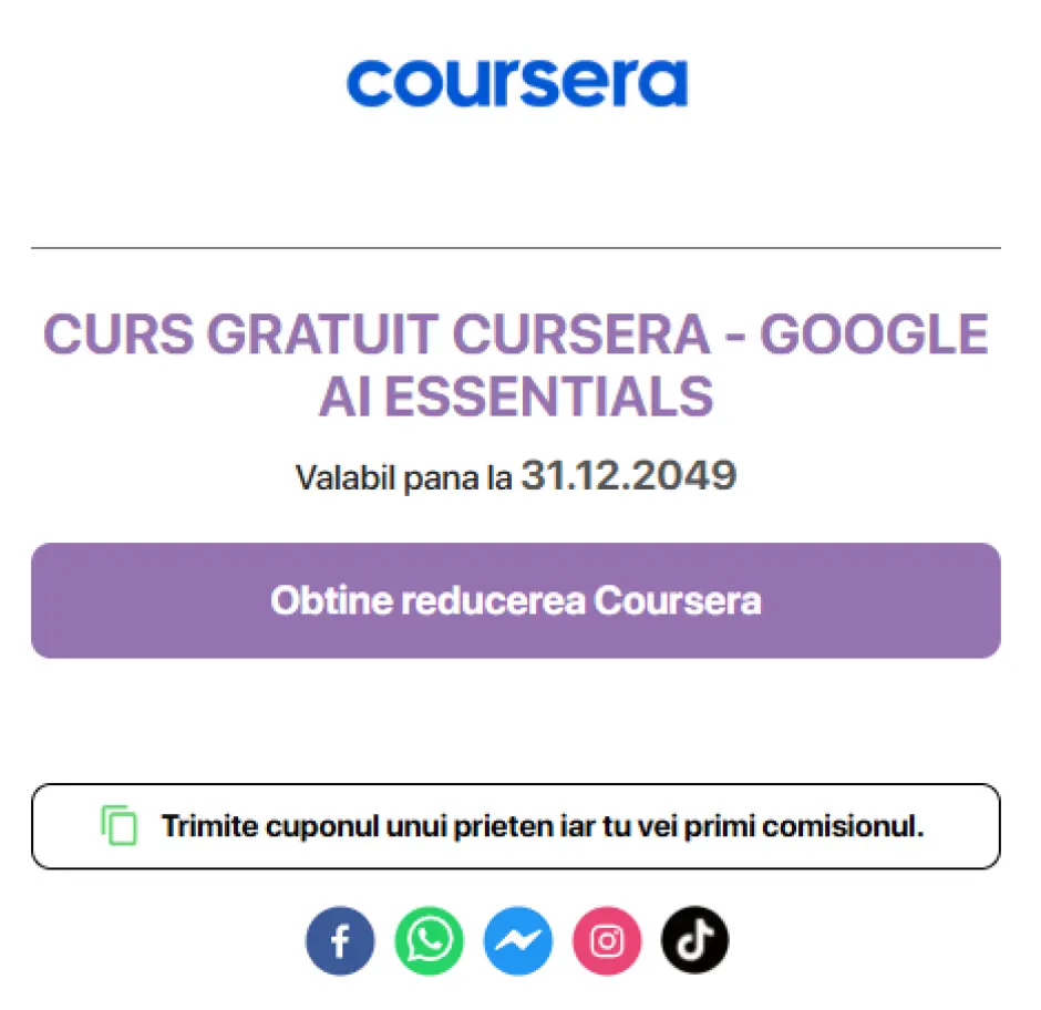 CURS GRATUIT: Google AI Essentials (Coursera). Vezi Cursul aici.