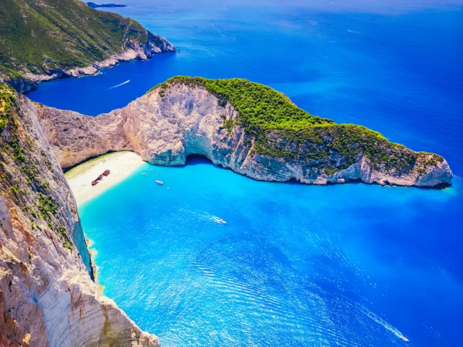 Insula Zakynthos este faimoasă pentru „Plaja Navagio” (plaja epavei), unde o navă grecească abandonată, cunoscută sub numele de „Panagiotis”, poate fi găsită pe nisipul alb? Este un loc extrem de popular printre turiștii care vin să fotografieze epava și să se bucure de frumusețea naturală a plajei.